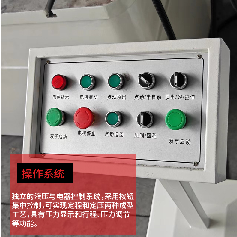 兩梁四柱是液壓機的一種常見結(jié)構(gòu)形式,其中 “兩梁” 通常是指兩個橫梁,“四柱” 是指四個立柱。這種結(jié)構(gòu)可以為液壓機提供穩(wěn)定的支撐和導(dǎo)向,保證在工作過程中活動部件(如滑塊等)能夠平穩(wěn)、精確地運動,以滿足對工件進行加工的精度要求。移動工作臺則是該液壓機的一個特點,它能夠在一定范圍內(nèi)移動。這種設(shè)計具有以下一些優(yōu)點:方便上下料:操作人員可以將工作臺移動到合適的位置進行工件的安裝和拆卸,提高工作效率,尤其對